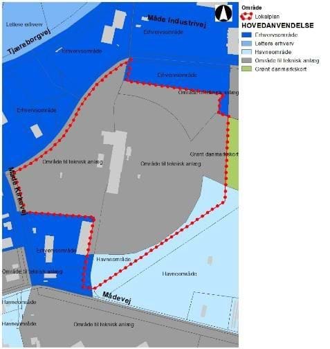 med mulighed for risikoerhverv i miljøklasse 3-7. Lokalplanen er i overensstemmelse med