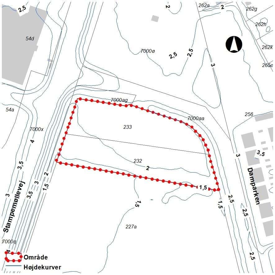 Billede 2 – Afgrænsning af lokalplanområdet med højdekurver.