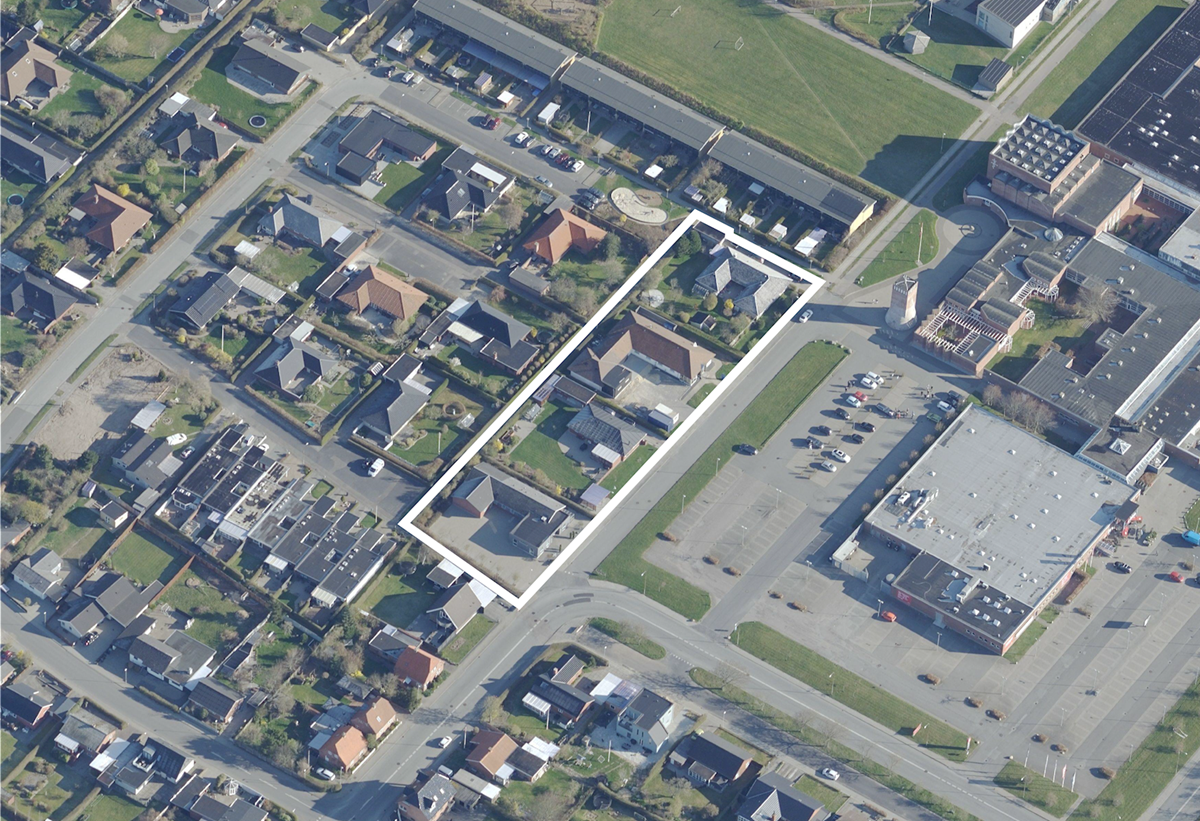 Terrænet i og omkring lokalplanområdet er fladt og består primært af asfalt/sten afbrudt af enkelte græsarealer. Bebyggelsen i lokalplanområdet og langs Fyrvej består af parcelhuse i rødlige mursten. I forlængelse heraf er der flere tilbygninger i grå/hvide nuancer.