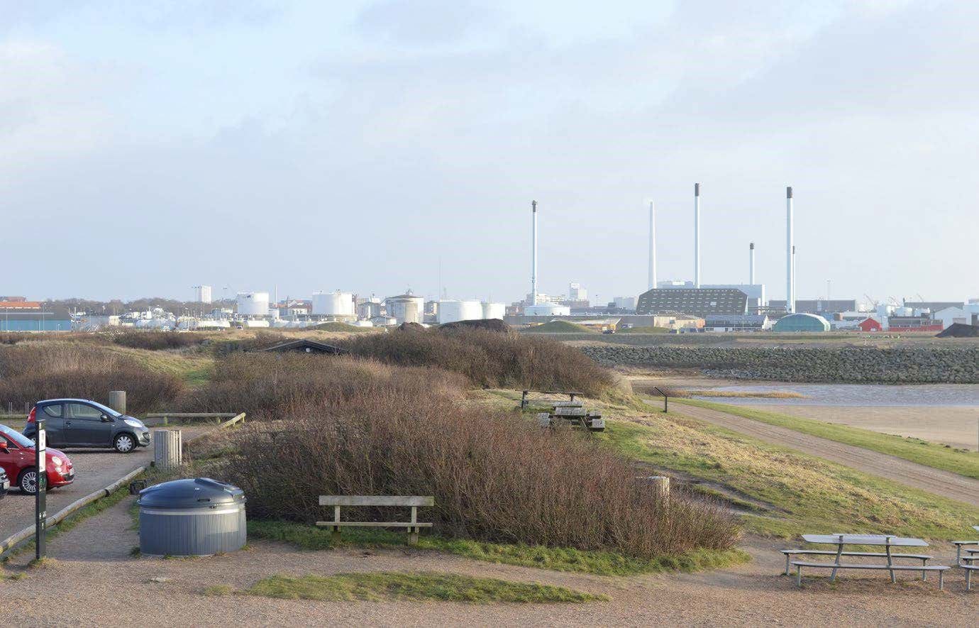 Fra dette fotopunkt er der et kig over hele Esbjerg by. I forgrunden ses havneerhvervenes bebyggelse med høje produktionsbygninger, siloer og skorstene. Bag havneerhvervene ses den høje bebyggelse rundt om planområdet placeret som en gruppe af bygninger. Den planlagte bebyggelse placeres som en del af denne gruppe af bygninger og falder på den måde ind i gruppen, så den kun bliver synlig i uvæsentlig grad. Kystbilledet ændrer dermed ikke karakter med realiseringen af den planlagte bebyggelse.