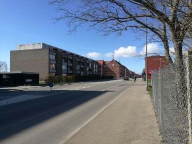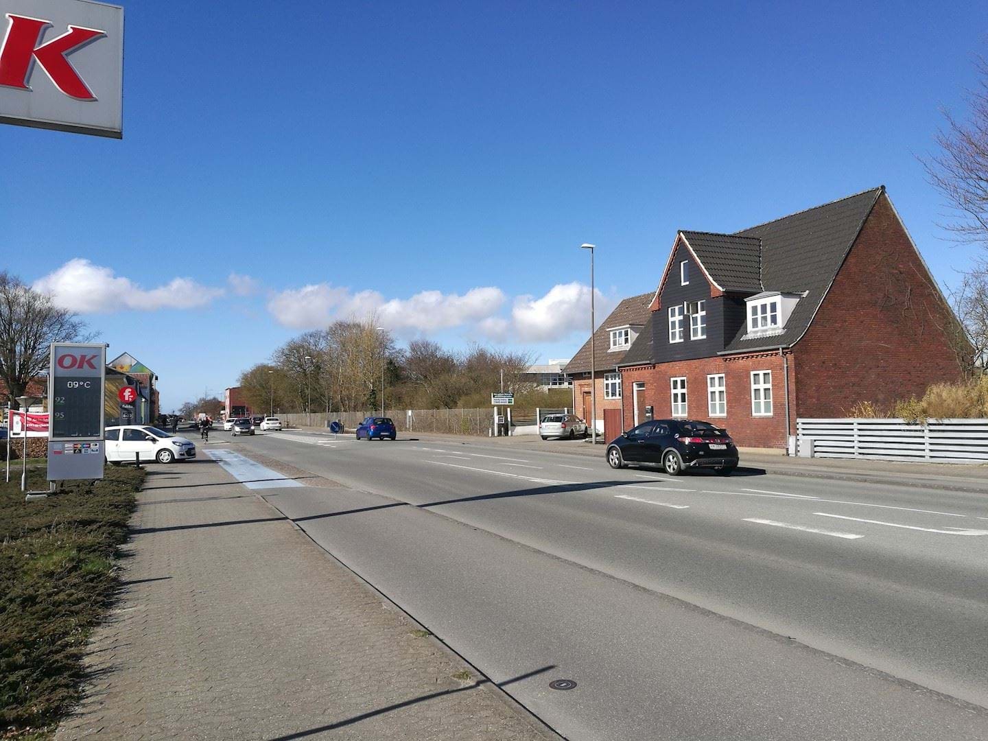 Storegade set fra øst mod vest. Lokalplanområdet ligger bag Storegade 104 og 106, de to villaer i billedets højre side.