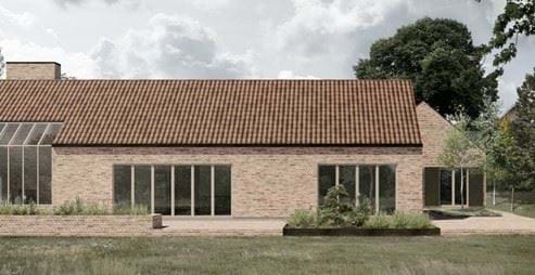 Eksempel på moderne fortolkning af et længehus opført i tegl.