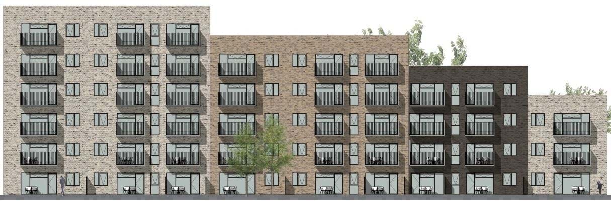 Etageboligerne fordeles på tre identiske etageboliger, der fra vest mod øst trapper ned fra 6 til 3 etager. Den nye bebyggelse får en totalhøjde på op til ca. 21 m. Det vil sige at etageboligerne i byggefelt B6 har en højde på max 21 meter. I byggefelt B3, som ligger nærmest nabobebyggelsen på Mølleparkvej 14A-30E, er højden max 11,5 meter.