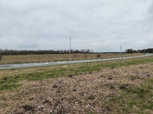 View over planområdet set fra lokalcenteret på modsatte side af Sønderrisvej.