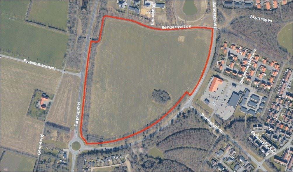 Området omfatter et areal på i alt ca. 11,7 ha, og afgrænses af Tarphagevej mod vest og Sønderrisvej mod syd og øst. Øst for Sønderrisvej ligger desuden et mindre lokalcenter med gode dagligvarebutikker, samt et eksisterende tæt-lav boligområde.