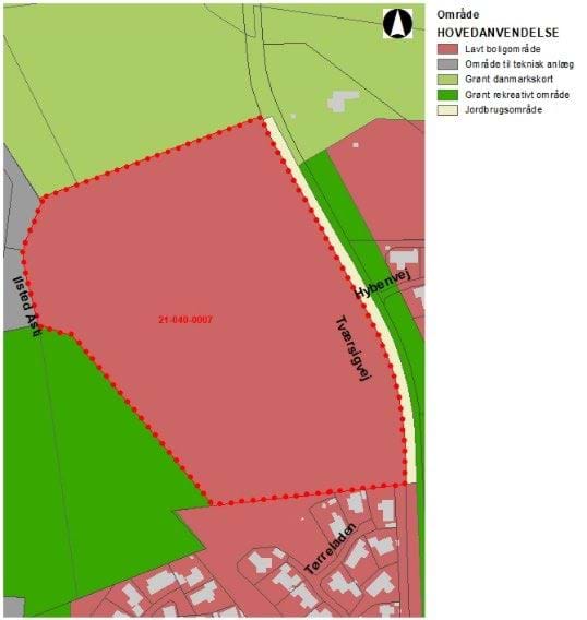 I Kommuneplan 2022-2034 er området udlagt til landområde. I kommuneplanændringen fastlægges den til boligområde. I overensstemmelse med kommuneplanændringen fastlægges anvendelsen i lokalplanen til boligområde med blandet tæt-lav og åben-lav bebyggelse.
