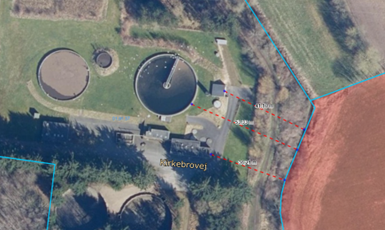 Afstand fra lokalplan område til udledningskilde Naturlig vold omkring pumpe