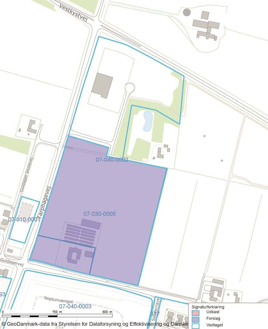 Inden for lokalplanområdet gælder følgende lokalplaner og byplanvedtægter: Lokalplan nr. 07-040-0002, Guldager landområde. Den væsentligste forskel mellem den gældende plan og forslaget er;