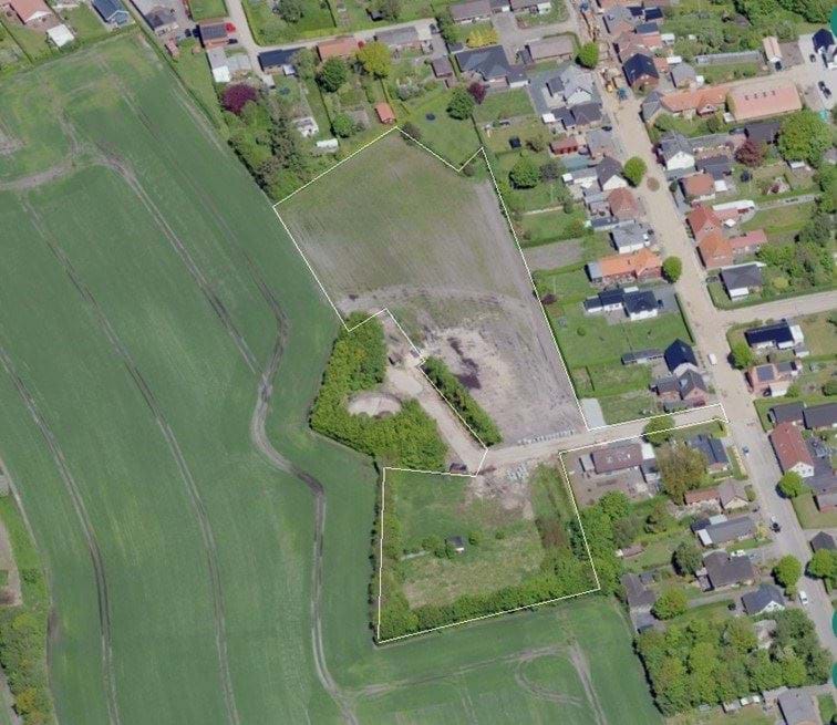 Lokalplanområdet set fra den eksisterende asfalterede vej mod det nordligt beliggende areal.