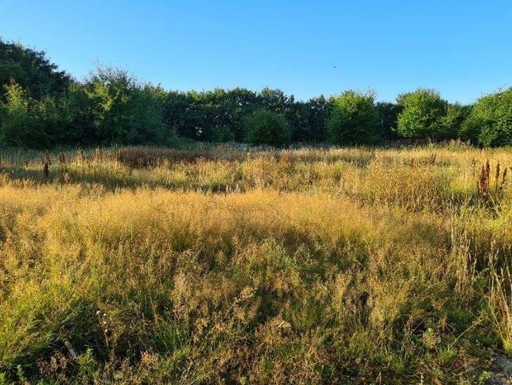 Lokalplanområdet set fra den eksisterende asfalterede vej mod det sydligt beliggende areal.