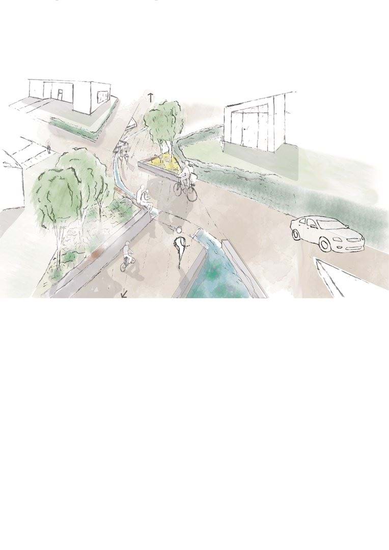 Af stemnings skitsen, fremgår et eksempel på hvorledes området kunne se ud, når det er udbygget. Stemnings skitsen er ikke bindende.