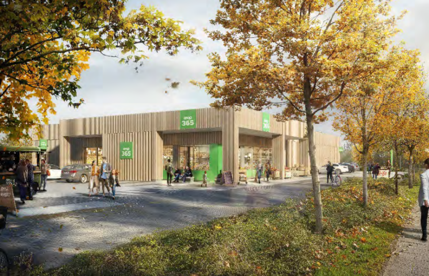 Visualisering af Coops COOP365 koncept - Hvissinge, Glostrup.