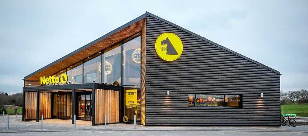 Nyudviklet butikskoncept med facader i mørke skærmtegl og trælister.