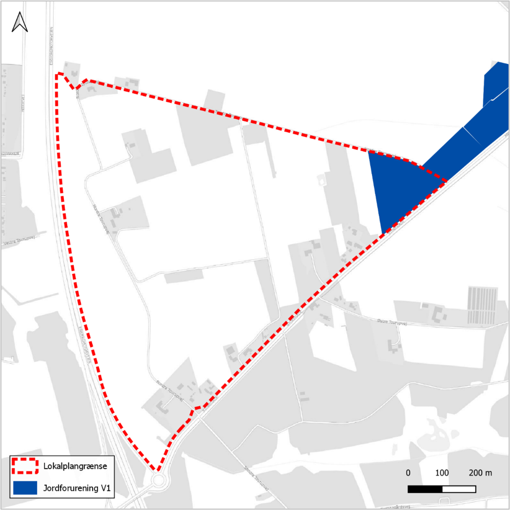 Lokalplanområdets beliggenhed i forhold til registrering af potentiel jordforurening V1.