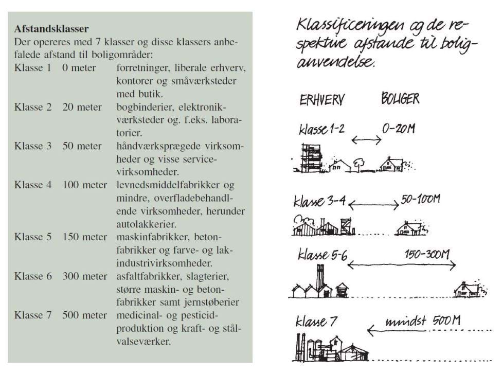 I lokalplanen fastlægges anvendelsen til erhvervsområde til service- og håndværkervirksomheder. Der må kun etableres funktioner med en miljøpåvirkning, der svarer til miljøklasse 2-3 i Håndbog om Miljø og Planlægning. Nedenstående billede er vejledende.