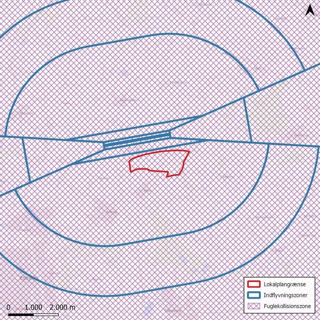 Lokalplanområdet ligger indenfor lufthavnens indflyvningszoner, hvilket medfører restriktioner om bygningers
