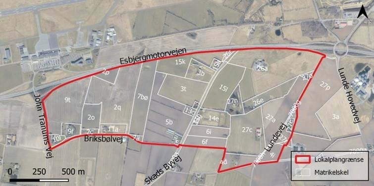 - samt dele af 3a og 7000a Lunde, Esbjerg Jorder og 7000ak, 7000a, 27g, 27r, 27e, 27p Skads, Esbjerg Jorder.