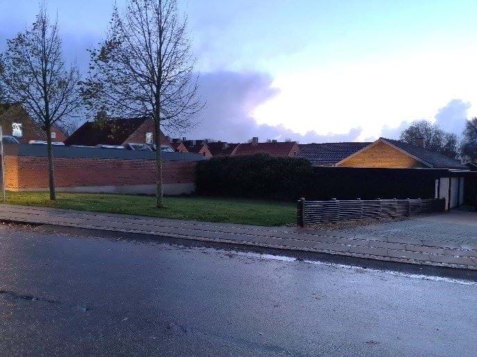 Billede fra vest mod øst med eksisterende helårshus og plankeværk mellem matr.nr. 266c og 266a Søndermarken, Ribe Jorder