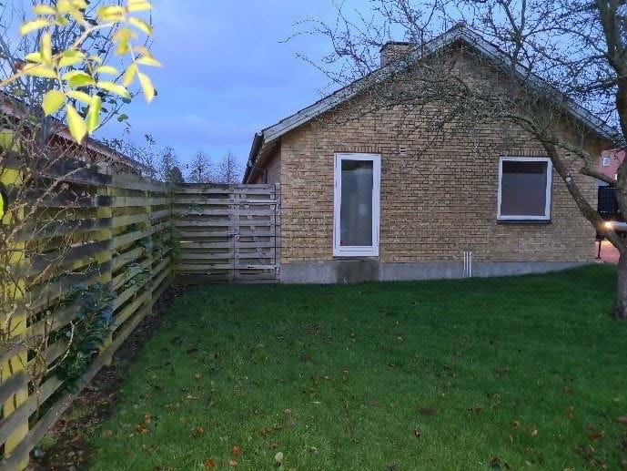 Billede med kig til eksisterende helårshus, som benyttes som servicebygning af feriecenteret.