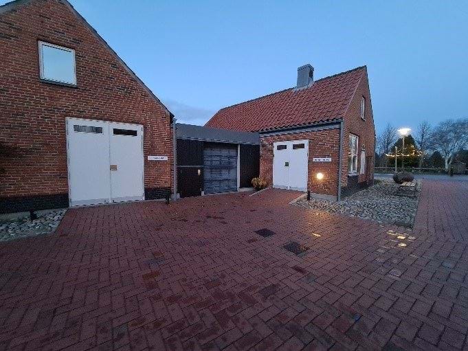 Billedet viser eksisterende servicebygninger indenfor lokalplanområdet