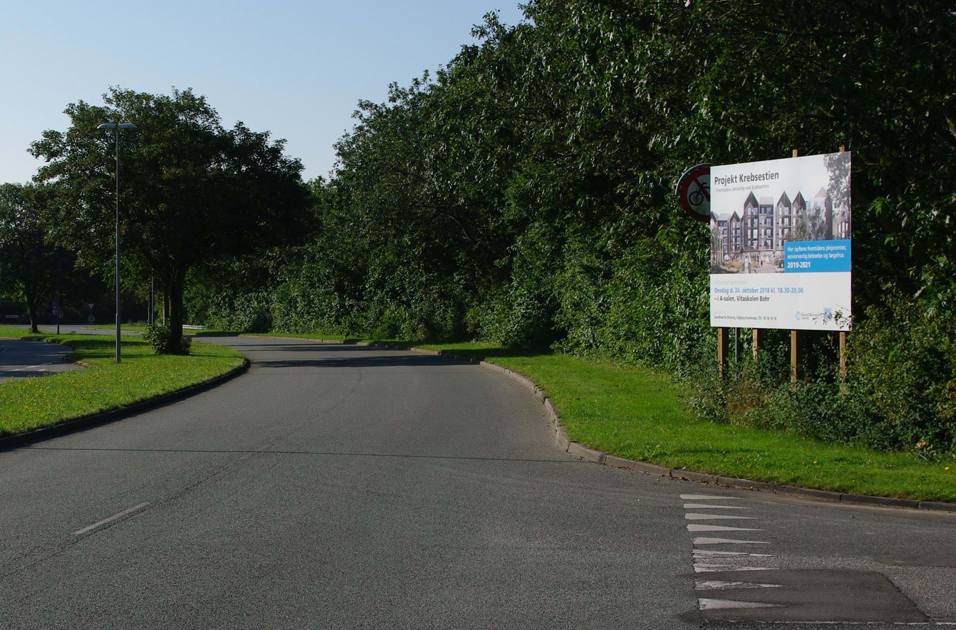 Nuværende indkørsel til Krebsestien fra Grønlandsparken.