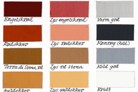 Facaderne skal fremstå lyse og lette, og der må kun benyttes farver i overensstemmelse med den viste farveskala eller lignende lyse, naturlige jordfarvetoner. Facaderne skal fremstå i en tydeligt lysere farve/nuance end basens røde teglsten.