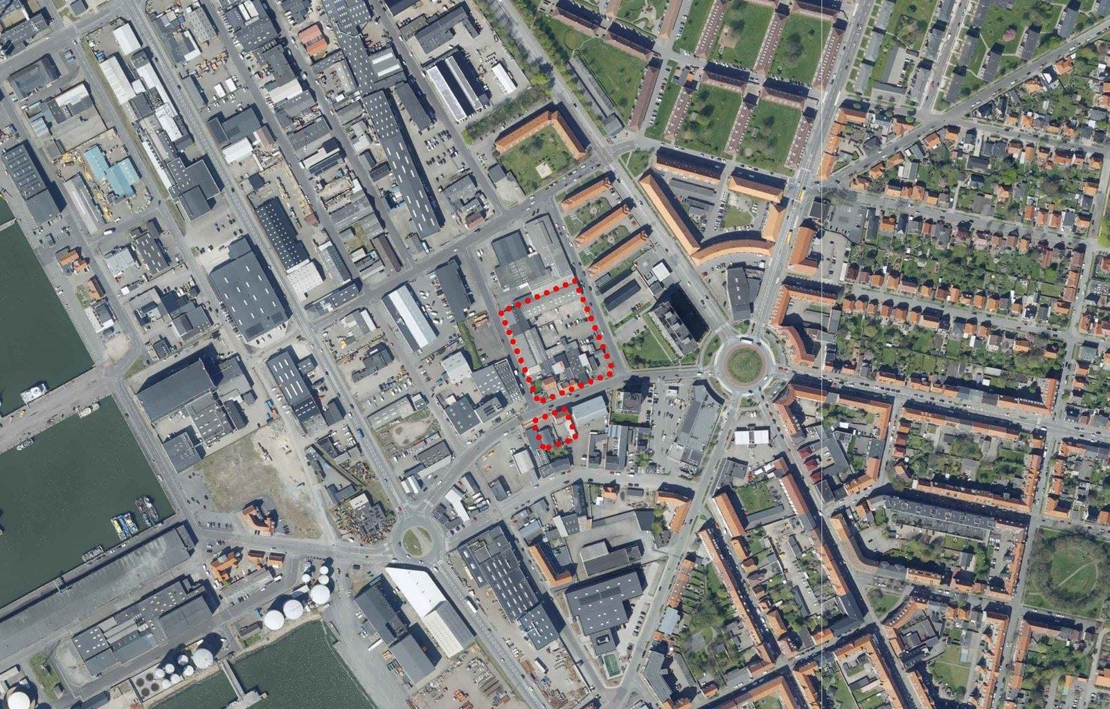 Det nordlige planområde afgrænses af Helgolandsgade mod syd, Samsøgade og boligområde mod øst, Læsøgade og erhvervsområde mod vest og en større erhvervsbebyggelse mod nord. Det sydlige planområde afgrænses af Helgolandsgade mod nord, mens der mod øst, vest og syd ligger mindre erhvervsejendomme. Området ligger vest for det centrale Esbjerg og ca. 300-400 m fra havnen mod vest.