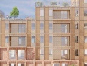 Den nye bebyggelse planlægges i bygningens base udført i teglsten, og lokalplanen stiller krav om røde tegl i de nederste etager for at skabe et materialemæssigt samspil med særligt boligbebyggelsen nordøst for planområdet, men også den øvrige midtby mod øst, hvor røde teglsten er et gennemgående element. Der skal ske en op-/nedtrapning af etageantallet med røde teglsten, så der for mindst hver 20. meter sker et spring i etageantallet, der udføres i røde teglsten. Der stilles ydermere krav til, at facaderne mod gader og offentlige byrum skal brydes for mindst hver 20. meter ved eksempelvis detaljering eller spring i murværket, nicher, begrønning eller andre arkitektoniske tiltag, der skal bidrage til en indbydende og varieret kantzone. For hele byggeriet stilles krav om en grid-inddeling med en vertikal opdeling for mindst hver 10. meter for at skabe en visuel sammenhæng i hele byggeriet.