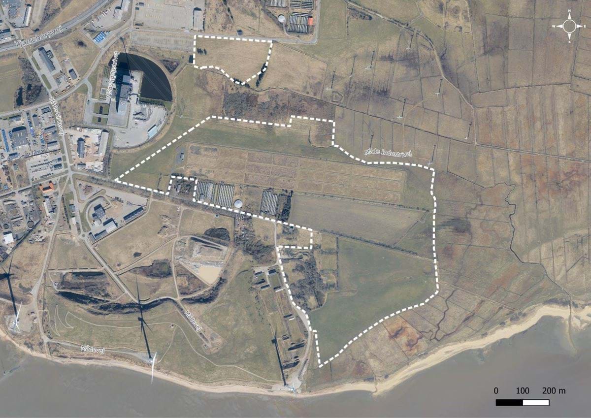 Lokalplanområdet er primært beliggende i landzone og anvendes i dag til intensiv landbrugsdrift, slammineraliseringsanlæg, jorddeponi og minkfarm. Størstedelen af planområdet består af barmark, men rummer også eksisterende bebyggelse på omkring 9.000 m², primært i form af nedlagte minkhaller og bebyggelse i tilknytning til slammineraliseringsanlægget. En mindre del af projektområdet udgøres dels af privat fællesvej og dels af ubefæstet vejareal, som bl.a. fungerer som adgangsvej skydebanen og til de forsøgsvindmøller, som er opført sydvest for projektområdet.