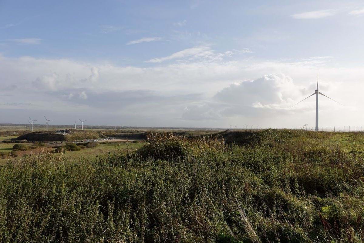 Nedenfor ses et billede af planområdet set fra sydvest med Måde Bakker forrest i billedet. Til højre ses en af kyststrækningens store forsøgsvindmøller og bagerst til højre de mindre, ældre vindmøller syd for Tjæreborgvej.