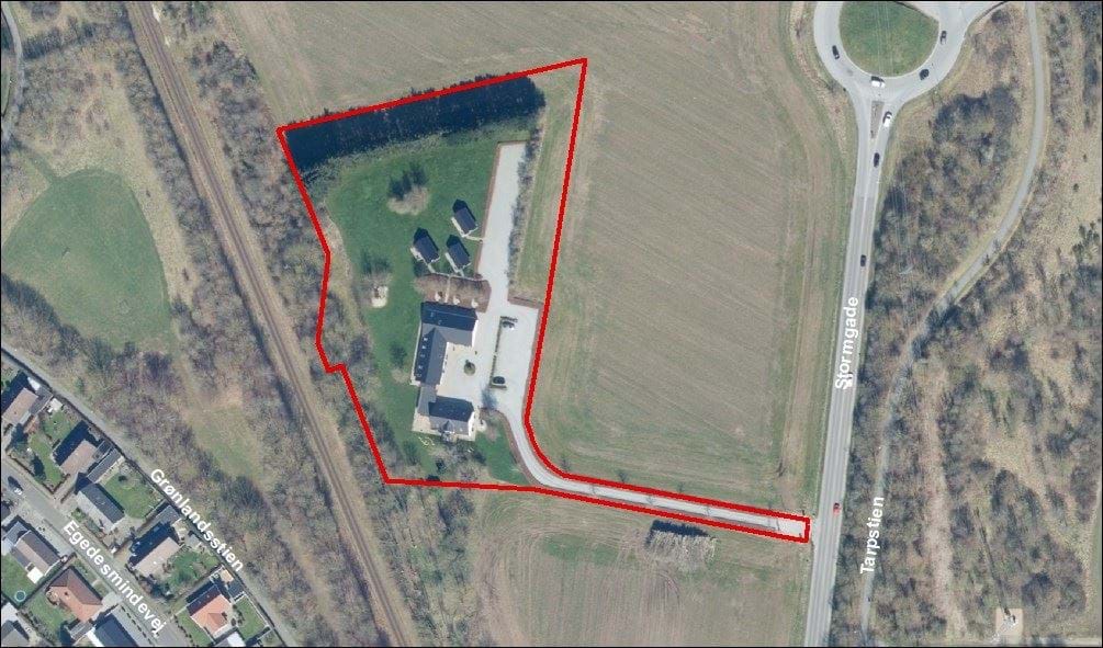 Området afgrænses af et læhegn mod nord, hvor der på den anden side er marker som omkranser lokalplanområdet mod nord, øst og syd, med undtagelse af adgangsvejen som strækker sig fra lokalplanområdets sødøstlige hjørne og ud til Stormgade. Mod vest afgrænses området af jernbanen, hvor der på den anden side ligger et eksisterende boligområde.