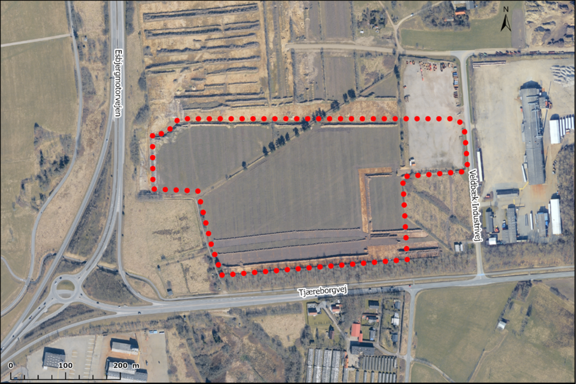 Lokalplanområdet omfatter matr.nr. 1ai, Esbjerg - Veldbæk jorder og matr.nr. 1ak, Esbjerg – Veldbæk jorder og har et samlet areal på cirka 11 ha. Der blev i 2022 foretaget en lokalplanændring af den eksisterende lokalplan nr. 453 fra 2003 i forbindelse med Erhvervsministeriet udgivelse ”Vejledning vedr. fleksibel planlægning – lokalplaner af mindre betydning”, der gjorde det muligt at forenkle processen for lokalplaner som ikke medfører væsentlige ændringer i omgivelserne. I Lokalplan nr. 453 med lokalplanændring nr. 1 gives der mulighed for at udlægge området til erhvervsformål op til miljøklasse 7, samt friholde et grønt naturområde og et kildefelt for bebyggelse.